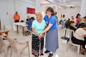 The team encountered a 94 year-old woman who was described as a pillar of the congregation at one of the churches they visited. She told Angie Ugo that she was unable to read her Bible due to her bad vision. It was determined she would need very thick glasses so she could read the print. Thanks to a MOST Ministry donation, this woman received glasses and a new cane. Angie worked with her to help her get accustomed to her new glasses and using the cane so that she would be more stable walking.