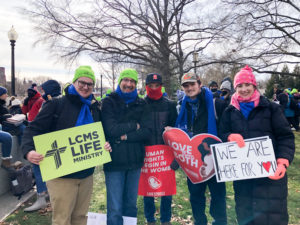 The march itself took place Friday afternoon. The Y4Life students joined with the rest of the LCMS contingent, led by President Matthew Harrison. Green hats had been distributed among the LCMS groups to help keep us together. Along the way, the marchers said prayers, sang hymns, held signs, and marveled at the many thousands who had gathered. Marching along, one could come across friends and acquaintances from other parts of the country who had also joined in the event.