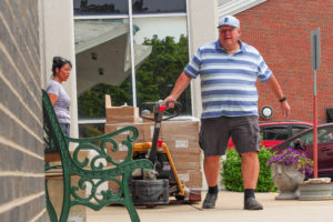 Joseph, Mich. The driver lifts the door of the trailer, which is filled with boxes of food. A lot of boxes. There’s no way all that food is for this one stop, but the driver keeps unloading box after box, until the semi’s trailer is empty. That’s 3.5 tons of food that Trinity will be handing out to families in need.