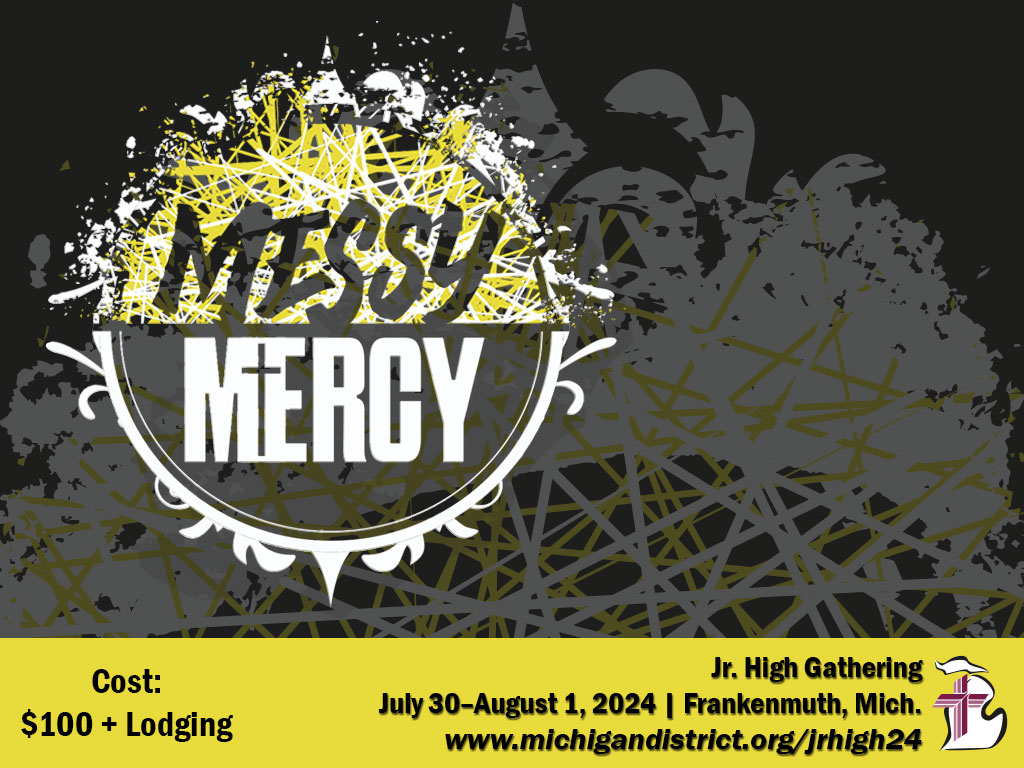 The Michigan District, LCMS Junior High Youth Gathering 2024 is all about the MESS! God’s mess?! It’s true! When we look at God’s plan for His people and their salvation—His Son being born as a regular human baby, touching the messy/untouchable, dying bloody on the cross—it all looks messy … that is, until we look at our own lives. We ARE certainly a MESS in our sin and shame. But God reached into that mess and showed us His great love and mercy, reconciling us to Himself through His Son, Jesus Christ.