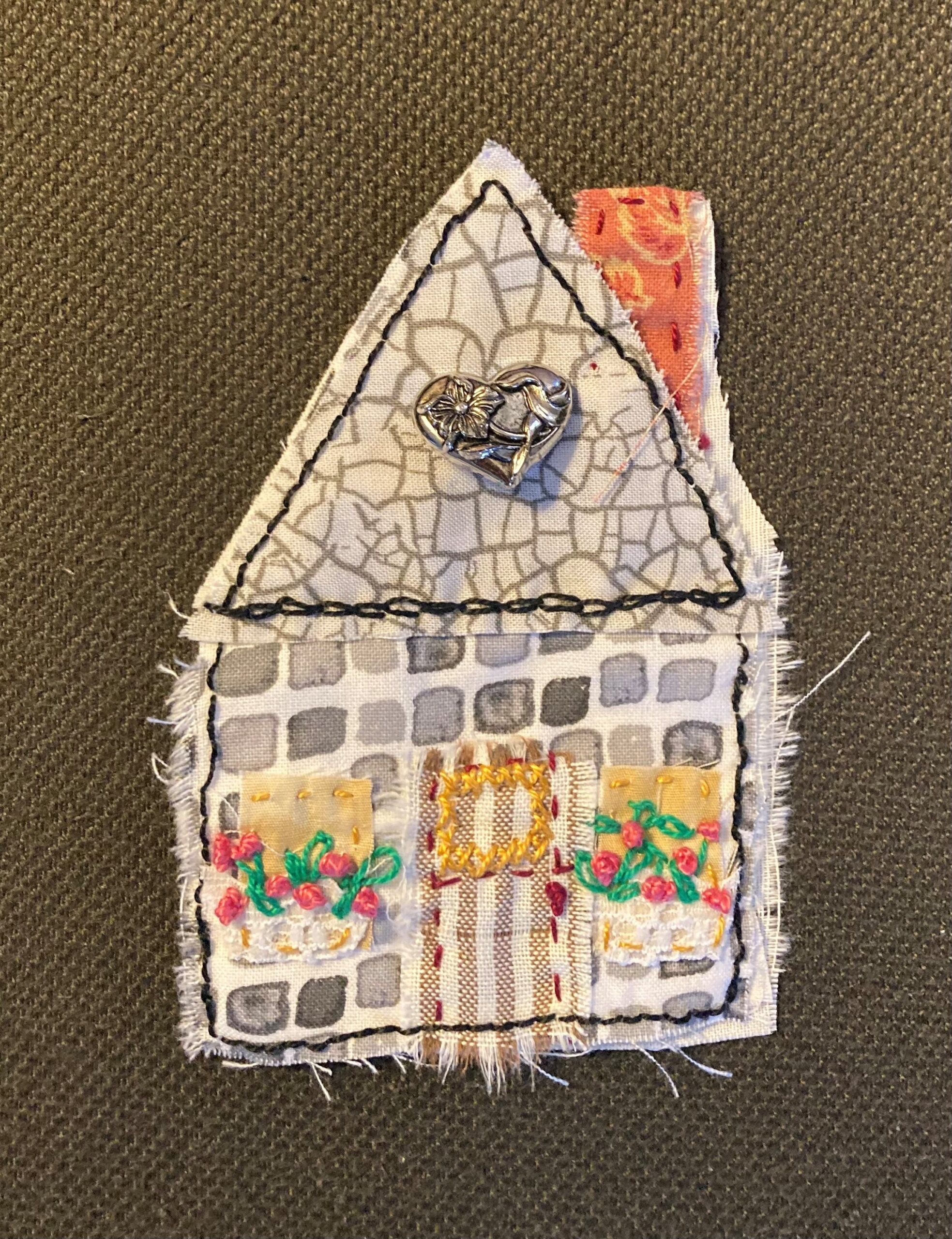 - Fabric scraps – about 5 inches square for house and roof with less needed for details of house