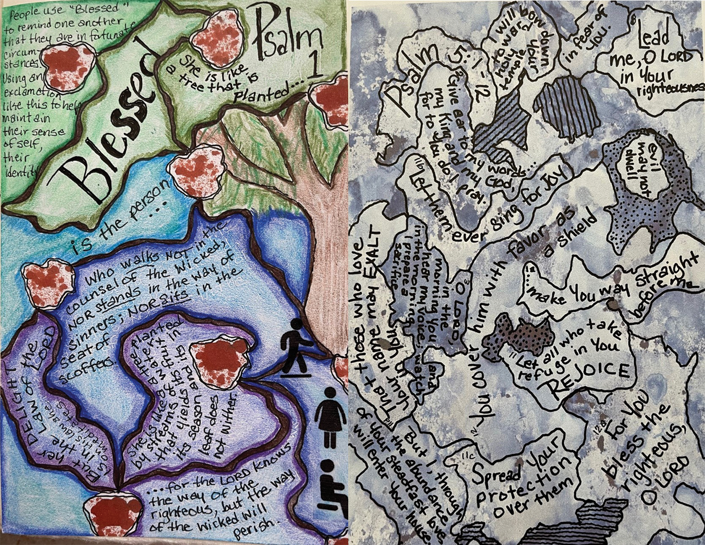 VFM Practices: Counterpanes/Open Spaces – Visual Faith® is presenting two (albeit similar) new practices in 2025. Scripture Prayer: Pen in Hand—Counterpanes and Open Spaces. These are practices whereby the participant will use the simplest tools: a Bible, pen, and paper. (And maybe some colored pencils if you feel so moved.) We will focus on the Psalm of your choice and spend time learning how to pray through that Psalm, listening to what the Lord says in that Psalm, noting insights, and using God’s Word as our source and norm for prayer. Please indicate on your online registration submission if you’d like to participate.