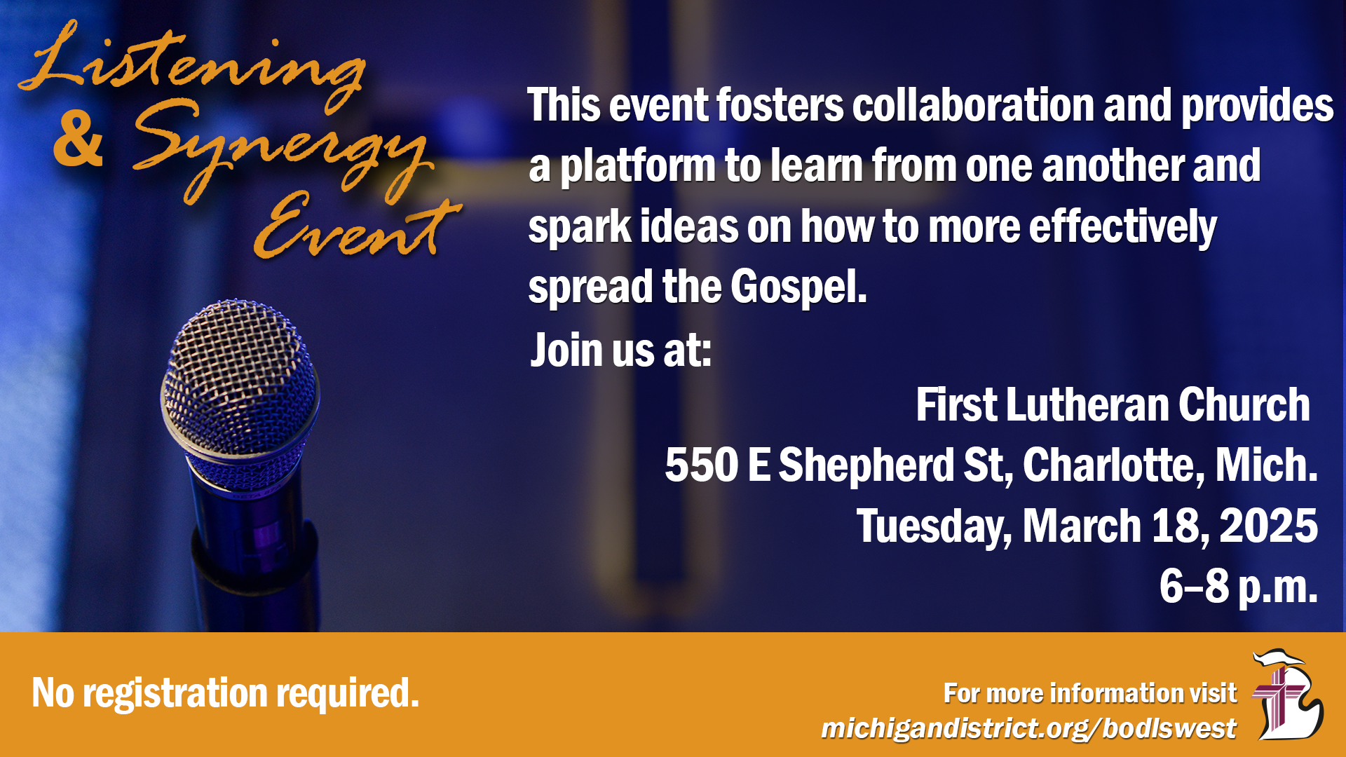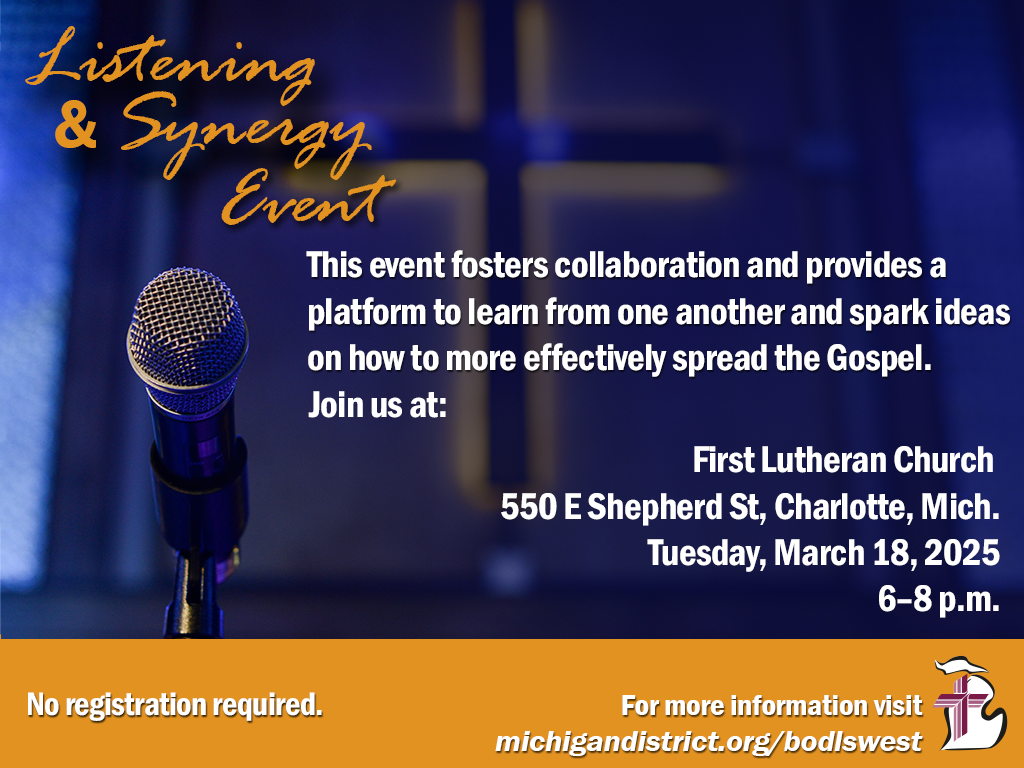 The Michigan District Board of Directors (BOD) is pleased to facilitate a Listening and Synergy event for the West Region. In an ongoing effort to connect more effectively with our congregations, the BOD has been inviting congregation members to get to know the Board and understand its function. Past events have presented information about the BOD and outlined what resources are available to our member congregations from the District.