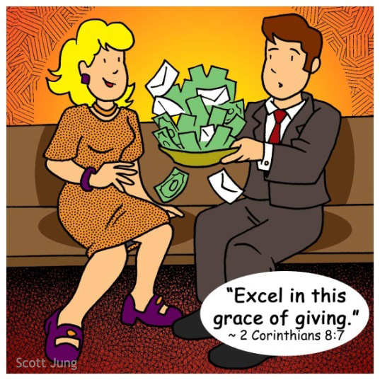 2 Corinthians 9:-7 – “Each one must give as he has decided in his heart, not reluctantly or under compulsion, for God loves a cheerful giver.”