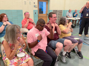 It’s loud, as Yes, Jesus Loves Me rings throughout the fellowship hall at St. Paul in Trenton. Tambourines shake, bells jingle, and cymbals clang. It all happens in the opening song at the Rejoicing Spirits worship. Children and Family Life Minister Don Busse calls this the “no shush service.”