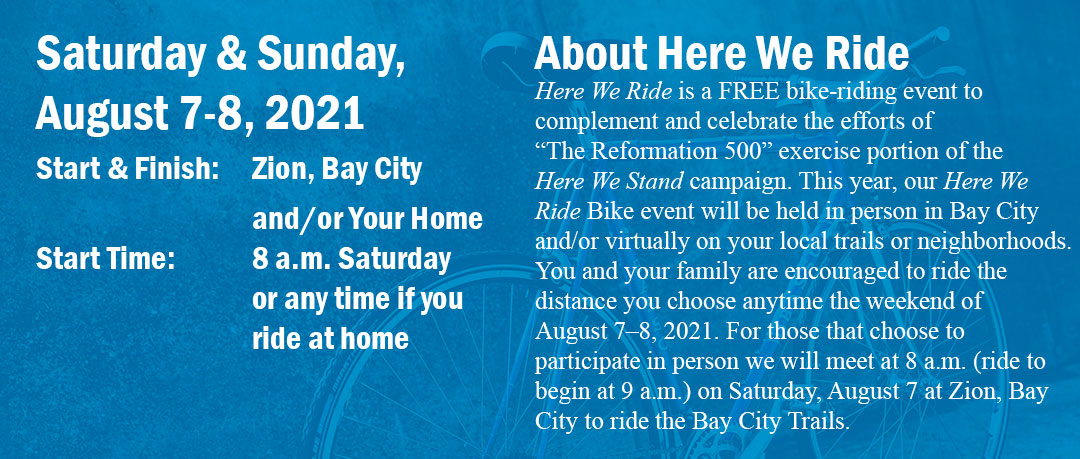 Detailed Info Sheet | Half Sheet Flyer Tentative Schedule of EventsSaturday & Sunday, August 7-8, 2021The in person event will take place starting at 8 a.m. at Zion in Bay City on Saturday August 7, 2021 – Schedule If you are riding at home, begin your ride whenever is convenient for you and your family. Participate all at one time … or divide out your ride to be 2 or more outings.
