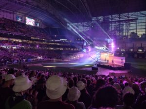 Kim Montague: For my group, I was kind of prepared because when I was in youth group as a teenager, we used to go to some large gatherings. That was on a much smaller scale, you know, in Chicago. And then River, my oldest son, had been to a couple of gatherings [NYGs], so he talked a lot about his experiences. He is almost 20 years old and talks about how they were both life changing. He absolutely loved the national gatherings. Our kids were really excited; they had heard tons of stories and they were just ready to go. It was overall just as amazing as River said it would be. We took a bus and the ride down there and back was much, much harder than we expected because the air didn’t work correctly. And it was 109 degrees. So, the whole way there, I was a little bit worried that all they would do is focus on that bus ride once they got there, but they forgot about it and enjoyed the whole week.