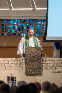 Three other worship services took place over the course of the three days: Monday morning’s Service of Invocation with Holy Cross, Jenison’s Rev. Brian West, preacher; Tuesday morning Memorial Service with Trinity, Clinton Township’s Rev. Kenneth Wise; and Tuesday evening Installation and Sending Service with Rev. Dr. David P. E. Maier, Michigan District President.