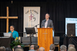 During convention, delegates heard from two essayists. Rev. Dr. Chad D. Lakies is the regional director for North America at Lutheran Hour Ministries and provides leadership and operational management for the North America region. Lakies presented the topic: Plausible Hope: Faithful Witness in an Age of Distrust.