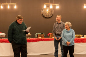 Donna was honored during the staff Christmas party on December 13. Her husband couldn’t attend due to illness, but her grandson Nick came with her.