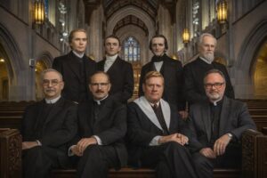 Historic Trinity, Detroit is celebrating 175 years of ministry in 2026. Only eight pastors have led the ministry of Historic Trinity over 175 years, each standing on the shoulders of the ones who’d gone before. Although seven have departed to the Lord—which is far better—when we commune before the altar, we do so with the angels, archangels, and the company of heaven. So, it’s a little like this picture…